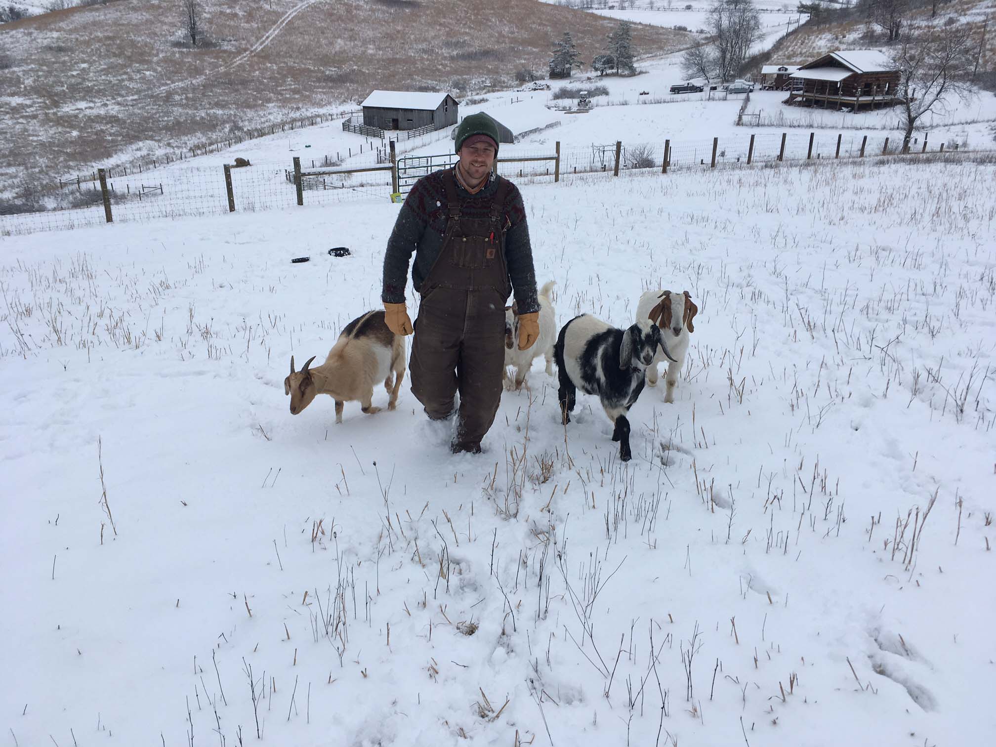 We tend a diversified farm in the Sinking Creek Valley (on Monacan land) that includes heirloom veggies and fruits; goat milk, kefir, feta, and chevre; culinary and medicinal herbs; eggs; and pastured lamb, goat, and poultry. We have planted hundreds of fruit and nut trees, many grafted from local varieties, to preserve diversity and enable agriforestry practices. Our farm also includes a tiny house cabin used as an agritourism destination and a hand hewn home built with logs from the land.